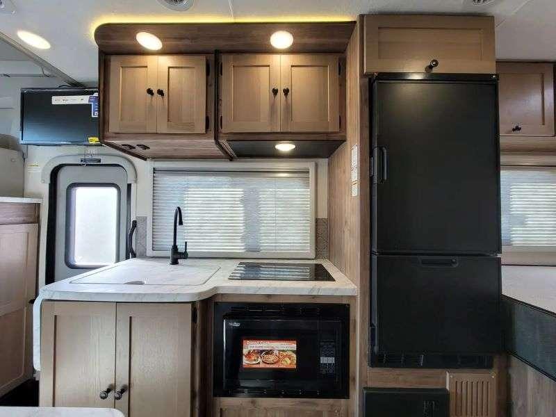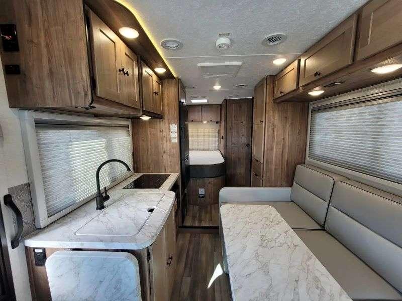 Sleeps 5 Length 24 ft 11 in Ext Width 7 ft 8 in Ext Height 10 ft 9 in GVWR 11030 lbs Fresh Water Capacity 29 gals Grey Water Capacity 32 gals Black Water Capacity 32 gals Generator 3.6kw Propane Fuel Type Diesel Chassis Mercedes-Benz Sprinter Fuel Capacity 26 gals Wheelbase 170 in Number Of Bunks 1 Available Beds Full Refrigerator Size 6.2 cu ft Cooktop Burners 2 Shower Size 24 x 32 Number of Awnings 1 Axle Weight Front 4410 lbs Axle Weight Rear 7720 lbs LP Tank Capacity 68 lbs Water Heater Type On Demand AC BTU 13500 btu TV Info LR TV, Ext. TV Awning Info 14' Power Gross Combined Weight 15250 lbs Shower Type Standard Similar Floorplans