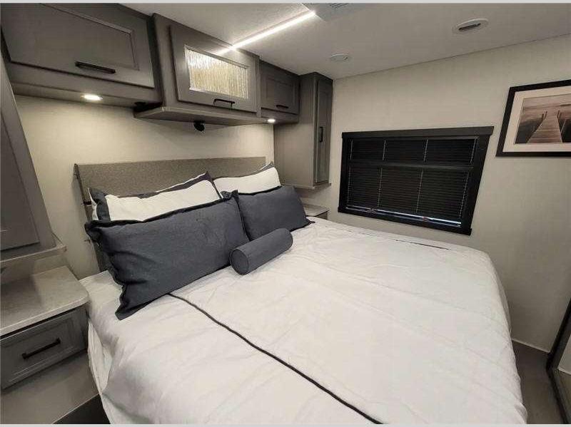 Their interiors are designed for maximum comfort with everything you could need to recharge. Some of these features include stainless steel appliances, a king bed, and an electric fireplace on some models. Enjoy a comfortable ride to each destination with the reclining/swivel pilot seats, and the 10" touchscreen radio with Bluetooth Apple CarPlay and Android Auto link allow you to play your favorite tunes too!