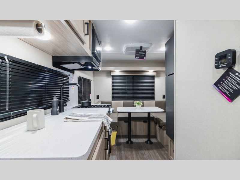 Sleeps 3 Slides 1 Black Water Capacity 30 gals Available Beds RV Queen Refrigerator Type 12V GE Stainless Refrigerator Size 10.7 cu ft Cooktop Burners 3 Shower Size 24" x 36" Number of Awnings 1 LP Tank Capacity 20 lbs Water Heater Type Tankless AC BTU 13500 btu Awning Info 17' Electric w/Multicolored LED Light Strip and Remote Axle Count 2 Number of LP Tanks 2 Shower Type Tub/Shower Combo Electrical Service 30 amp Similar Floorplans