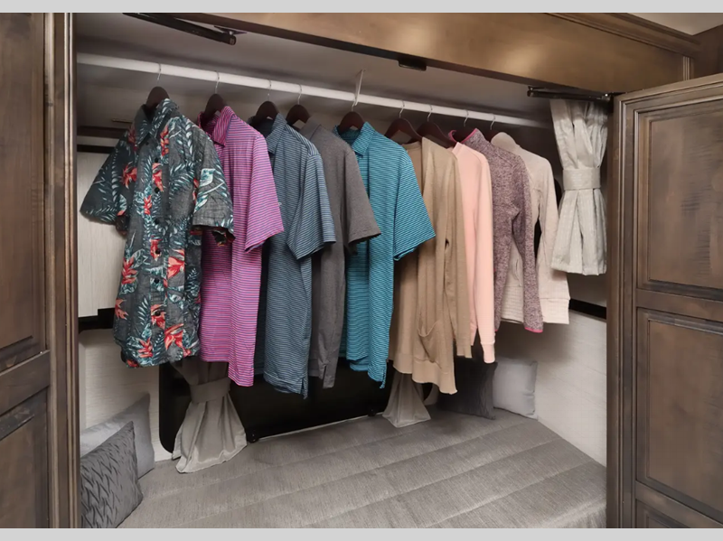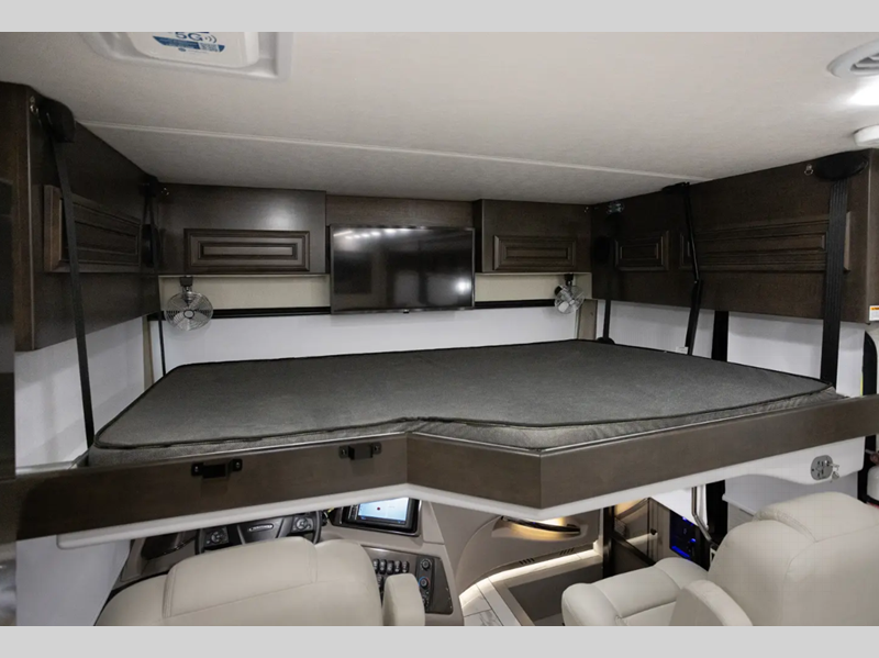 - Contoured overhead cabinets in slide rooms w/soft close hinges