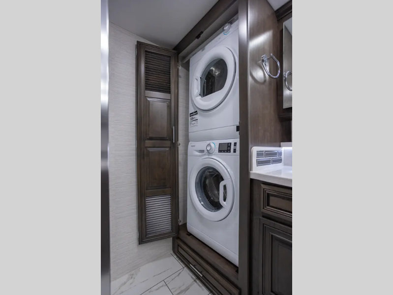 Your everyday needs will be exceeded with easy living interiors, modern décor, and an abundance of comfort. There is a front independent suspension and an optional rear V-Ride suspension system so you can carry more gear with a smoother ride and a more stable handling. Inside, you'll love the polished porcelain tile throughout and the hardwood raised panel cabinet doors, plus this coach is all electric to power you through many excursions!