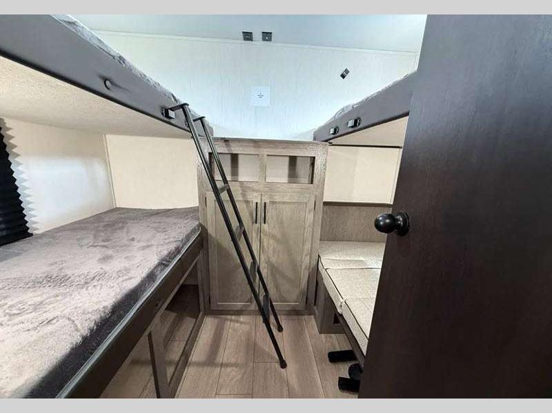Sleeps 9 Slides 1 Length 32 ft 8 in Ext Width 8 ft Ext Height 11 ft Hitch Weight 955 lbs GVWR 7955 lbs Dry Weight 6625 lbs Cargo Capacity 1330 lbs Fresh Water Capacity 81 gals Grey Water Capacity 35 gals Black Water Capacity 35 gals Number Of Bunks 2 Available Beds Queen Refrigerator Type 12V Residential Style Refrigerator Size 10 cu ft Cooktop Burners 3 Number of Awnings 1 Water Heater Type On Demand Tankless AC BTU 15000 btu TV Info LED TV Awning Info 20' Axle Count 2 Shower Type Tub/Shower Combo Electrical Service 50 amp Solar Wattage 100 watts Similar Floorplans