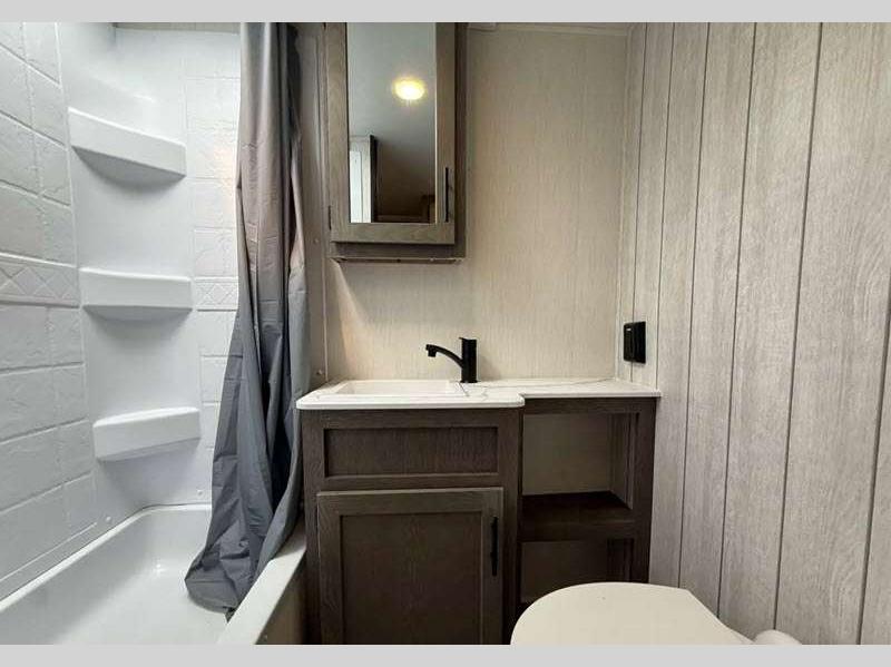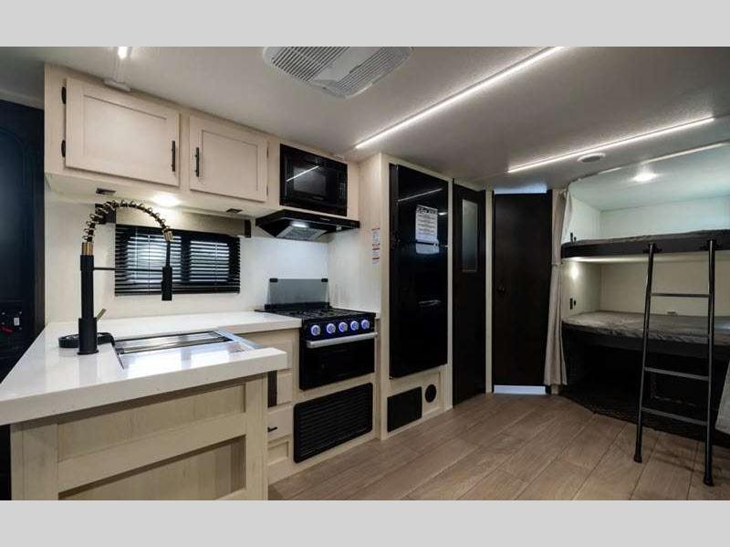 Sleeps 3 Slides 1 Length 31 ft 1 in Ext Width 8 ft Ext Height 11 ft Hitch Weight 910 lbs GVWR 7910 lbs Dry Weight 6581 lbs Cargo Capacity 1329 lbs Fresh Water Capacity 81 gals Grey Water Capacity 35 gals Black Water Capacity 35 gals Available Beds Queen Refrigerator Type 12V Residential Style Refrigerator Size 10 cu ft Cooktop Burners 3 Number of Awnings 1 Water Heater Type On Demand Tankless AC BTU 15000 btu TV Info LED TV Awning Info 15' Axle Count 2 Shower Type Radius Electrical Service 50 amp Solar Wattage 100 watts Similar Floorplans